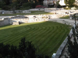 Les grecs construisent leur premier temple et Aristarqué en devient la prêtresse. Selon Strabon, le temple d’Artémis se situe juste au dessus du port, tout à côté de celui d’Apollon. Peut être sur la butte St Laurent ou celle des Moulins.